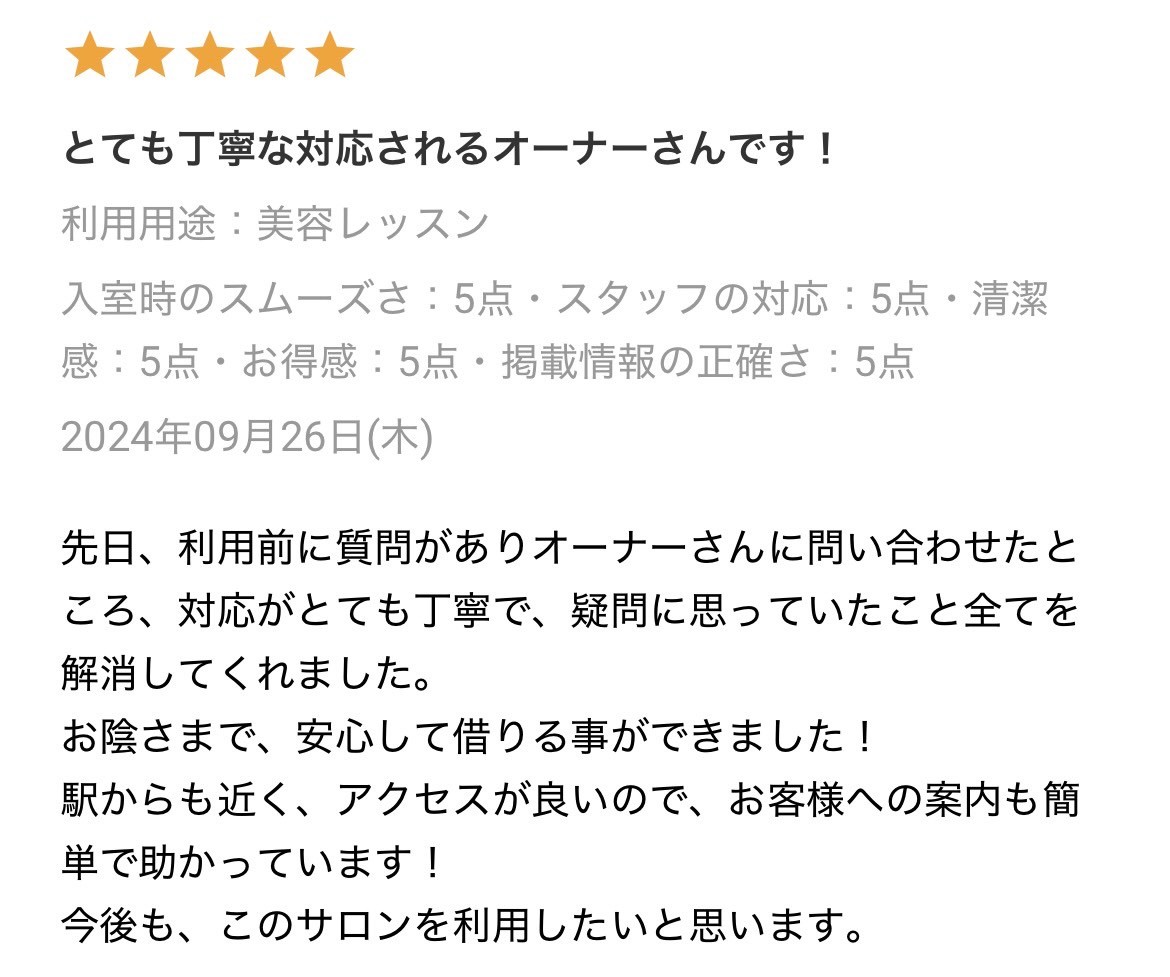 駅近の完全個室レンタルサロン